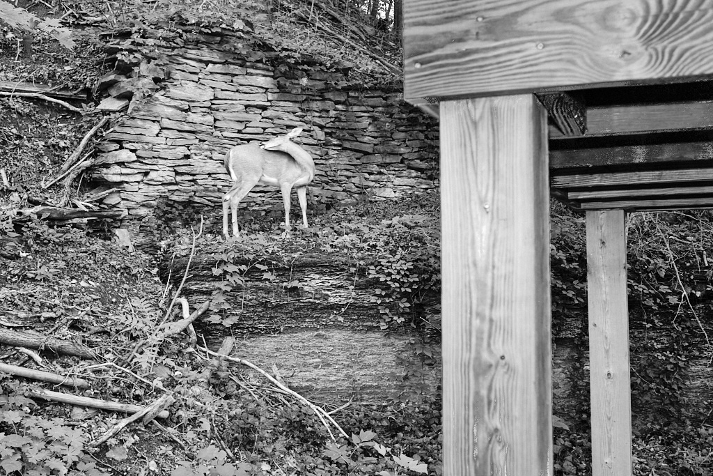 It resumed its meal. I moved closer as it bit off tender leaves and chewed. Another step. We made eye contact and I felt a soothing sensation wash over me, a feeling of safety such as I had never experienced before in my entire life. I took another step closer. There were only a few feet between us. Closer. I felt its warm breath. The deer turned and I followed it up the hill, through the trees, leaving the glass door hanging wide open behind me as we made our way toward the gorge. My toes gripped dirt and roots and rocks.