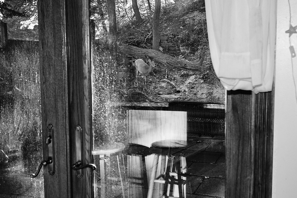 One morning while drinking coffee and writing, I noticed something moving on the hillside across the patio. It was a young deer, snacking on foliage. I had to be near it. I left my journal on the counter, opened the door, and stepped outside. The paving stones were cool and smooth and I felt twigs and dried leaves sticking to the soles of my bare feet. As I approached the deer it stopped eating and looked at me warily.